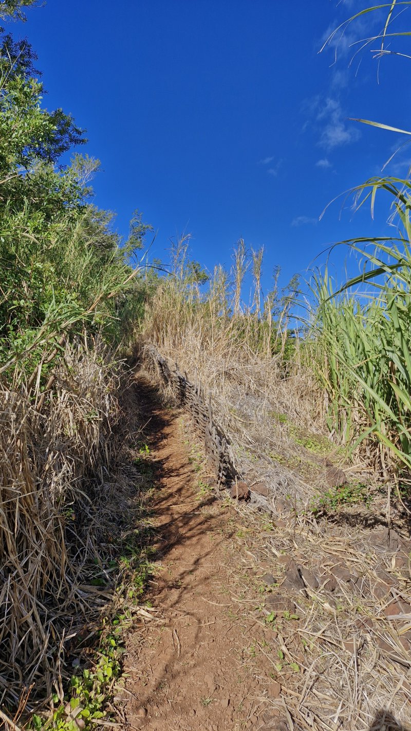 Deuxième boucle : Prendre à droite par la piste, rejoindre la route ( Chemin du Cimetière) à la ferme – Prendre à droite et la suivre jusqu'à la prochaine bifurcation - Reprendre à droite la Rue Terrain Isautier, passer le radier de la Ravine de l'Anse puis rejoindre la ravine 500 m plus loin. Retrouver le parking en suivant au plus près le chemin proposé, testé et garanti sans cul de sac.