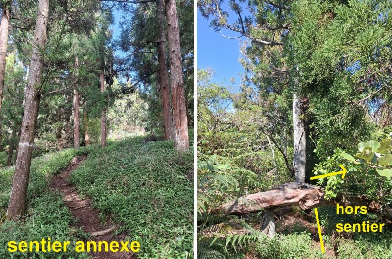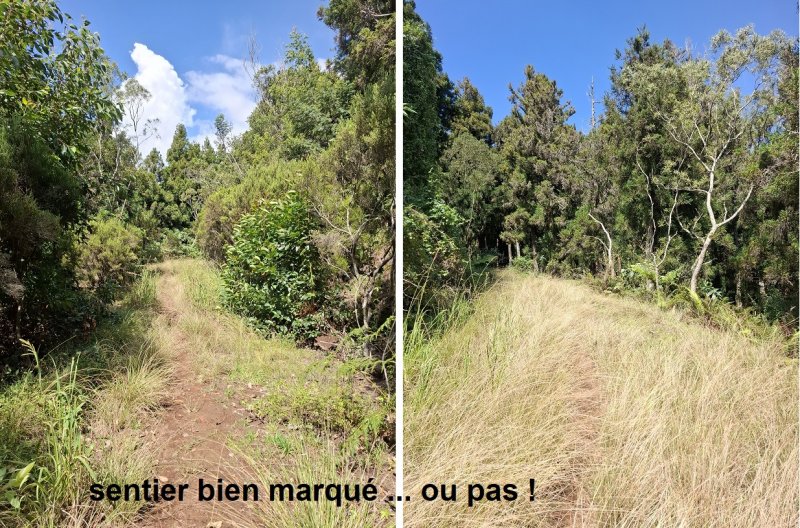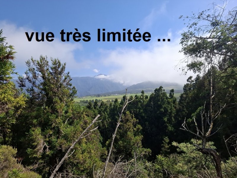 La randonnée débute au petit parking longeant la route de Bourg Murat à Bois Court (Photo 1). On se retrouve dans une lande couverte de grands ajoncs d'Europe et de bringeliersSolanum mauritianum Scop ; bringelier marron ou tabac marron. (Photo 2). Une piste, fermée par une barrière, monte au sommet sans difficulté et on peut l'utiliser pour une balade au calme sous les grands cryptomerias (Photo 3). La piste, bordée de jouvences, monte en pente douce en direction du sommet qui offre de moins en moins de panoramas (Photo 4). Dans le premier virage à droite, repérer le sentier qui monte tout droit sous les grands conifères (Photo 5). Abandonner la piste pour se lancer sur le petit sentier. Le sol est très peu envahi de plantes car les chevaux y montent régulièrement (Photo 6). La pente est de plus en plus forte mais comme elle est courte, inutile d'avoir un entraînement particulier (Photo 7). Au plus près du sommet, la végétation ne masque pas totalement les prairies de la Plaine des Cafres (Photo 9). D'un petit promontoire rocheux, on bénéficie encore de beaux points de vue sur Bois Court et les pitons entourant Grand Bassin (Photo 10). Le sentier se poursuit vers le sud-ouest mais deviendra de plus en plus difficile à suivre à l'ombre des cryptomerias. Repérer un arbre tombé en travers du sentier qui se trouve à 10 m du sommet (Photo 11). Une fois cette exploration terminée, redescendre vers la fin de la piste aperçue en passant (Photo 12). Les chevaux n'ont pas tout enlevé et la piste est recouverte d'herbe. Entamer la descente bordée de jouvences et de renouées pour une balade facile (Photo 13). La pente est toujours aussi faible au milieu de la petite forêt (Photo 14). Vers le bas, la piste se rétrécit et fait place à un large sentier bordé de branles verts (Photo 15). On aperçoit sur la gauche les véhicules sur la petite route et on repère quelques passages créés par des raccourcis un peu scabreux (Photo 16). La randonnée étant très courte, inutile d'utiliser ces raccourcis et poursuivre dans un agréable cadre verdoyant (Photo 17). On revient à la barrière en moins de 30 minutes même en flânant (Photo 18) puis à la route d'où l'on aperçoit le Piton Villers reconnaissable immédiatement à sa station météo qui occupe le sommet (Photo 19). Cette très courte balade ne mérite pas une sortie particulière mais il est très facile de rajouter pour une même journée le tour du Piton Dugain et celui du Piton de Borry de Saint Vincent aux Sources Reilhac. On peut également garer le véhicule à la Maison du Volcan et effectuer le trajet à pied sur la route puis la piste bétonnée qui mène au début de la sortie.