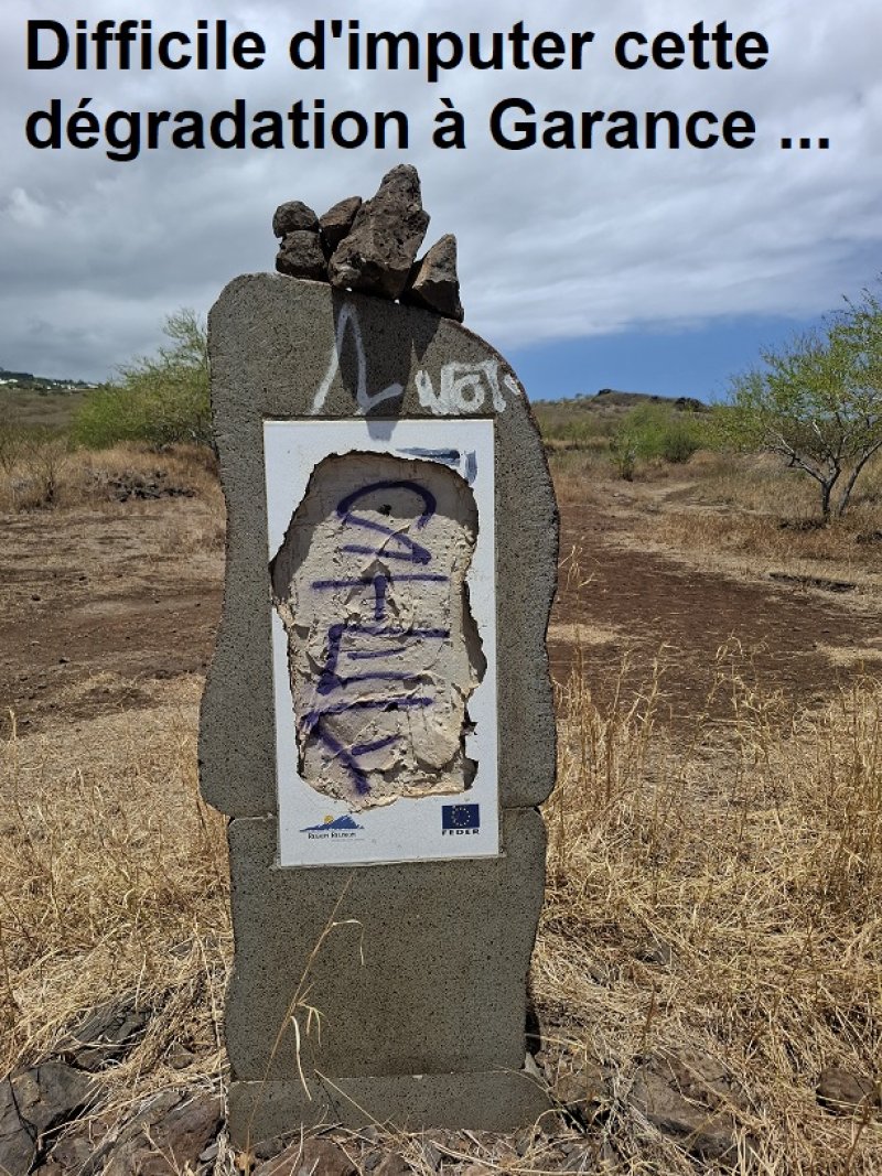La randonnée débute ici côté sel mais peut aussi commencer dans le village, plus haut, côté sucre. Contrairement à de nombreuses zones touristiques, celle-ci n'est pas fermée de hauts grillages et on peut tout à loisir longer les bassins de recueil du sel avant de descendre visiter le petit musée. Un panneau explicatif donne quelques indications sur la région et sur le sel (Photo 1). Le musée est un petit bâtiment qui se visite rapidement, s'il est ouvert au moment de la randonnée (Photo 2). En amont, des bacs de décantation permettent de recueillir quelques quintaux de sel (Photo 3) alors que la surface originelle, recouverte de terre et d'herbe, pourrait en produire des tonnes (Photo 4). A quelques mètres de là, les vagues se fracassent sur les rochers de la Pointe de Bretagne et la visite du lieu ne prend que 10 minutes. On peut ainsi s'approcher du bassin également utilisé pour le recueil de l'eau de mer et la baignade. Plusieurs grottes, failles ou gouffres se remarquent aux vagues qui s'y engouffrent en créant de hauts geysers d'eau salée (Photo 5). Un four à chaux émerge de la savane constituée de hautes herbes jaunes. La boucle commence sur la petite route qui passe sous la RN1a, rejoint l'abri bus en bois avant d'emprunter le sentier qui part au plus près de l'abri. Ce trajet est une véritable piste bordée de hautes herbes plus ou moins jaunes en fonction de la saison. L'allée, baptisée le Chemin des Découvertes, mène à quelques engins vieillissants entourés de chocas ou aloé véra (Photo 6). La piste comporte quelques tronçons constitués de marches en pierre (Photo 7). On s'approche rapidement de la Route des Tamarins qui se franchit par un tunnel très fréquenté après avoir contourné un long réservoir de recueil des eaux pluviales (Photo 8). Longer la piste bétonnée ou les sentiers de raccourcis. La zone est un peu bruyante à cause des véhicules lancés à vive allure mais elle est bien fleurie et verdoyante pour la région (Photo 9). Une haute sculpture colorée trône dans l'aire de pique-nique (Photo 10). Flâner dans l'aire de repos puis rejoindre l'escalier qui monte en direction de la Rue du Musée (Photo 11). Partir à droite sur cette route fréquentée puis poursuivre à gauche sur le Chemin de la Diagonale pour se rapprocher du musée pour quelques heures de visite. Si l'établissement est fermé, repérer les horaires pour une prochaine fois. S'il accueille des visiteurs, visiter les vestiges de machines ou les énormes poulies et roues dentées de l'ancienne usine (Photo 12 et 13). A l'intérieur, la visite, très intéressante peut prendre deux heures (Photo 14). Repartir vers l'aire de pique-nique impossible à manquer à son balcon d'observation sur la région. Il est possible de descendre directement avant le muret situé sur la gauche. On retrouve les zones fleuries ou arborées nécessitant d'abondants arrosages (Photo 15). Des emplacements abrités attendent les pique-niqueurs qui bénéficient de belles vues sur la mer ou la saline (Photo 16). Partir à droite après le tunnel, longer la piste et emprunter le premier chemin vers la gauche en direction de la mer (Photo 17). L'ancien élevage d'autruches disparu depuis de nombreuses années est désormais remplacé par de grands champs d'ananas (Photo 18). Emprunter, plus bas, une nouvelle allée partant vers la droite. Elle est bordée de chaque côté de grosses touffes d'aloé véra (Photo 19). Rejoindre une large piste en terre qui mène à la deuxième aire de pique-nique permettant également de beaux points de vue (Photo 20). Ici, moins d'arbres qu'en amont pour procurer de l'ombre durant les repas (Photo 21). On devine les roches du piton à quelques mètres de là tout en profitant des vues sur la Baie de Saint-Paul (Photo 22). Le regard porte jusqu'au Port et on a sous les yeux la totalité de la saline de la Pointe au Sel (Photo 23). Se rapprocher du Piton des Roches Tendres par un court sentier. Contrairement à leur nom, ces roches très dures peuvent s'escalader pour s'élever un peu et profiter des panoramas sans branches d'arbres pour gêner le regard (Photo 24). Revenir sur ses pas et prendre le petit sentier qui entame la descente du retour dans les hautes herbes qui jaunissent vite dès les premières chaleurs revenues (Photo 25). Tout le piton est envahi par les oreilles de lion ou pompon soldat (Leonotis nepetifolia), ces chardons caractéristiques (Photo 26). Longer les falaises d'une petite ravine de quelques centaines de mètres prenant sa sources au Roches Tendres mais qui a réussi en quelques millénaires à creuser une profonde vallée rocheuse (Photo 27). On rejoint, toujours sans effort, la piste caillouteuse parallèle à l'océan qui fait un coude vers la droite (Photo 28). On retrouve rapidement la piste empruntée au début de la boucle et l'abri bus le long de la route. Le musée du Sel est de l'autre côté de l'ancienne route nationale menant à l'Etang Salé. Rejoindre le parking ne prend que quelques minutes. La hauteur de l'herbe peut parfois empêcher de visiter le four à chaux de la Pointe au Sel dépassant de la savane herbeuse.