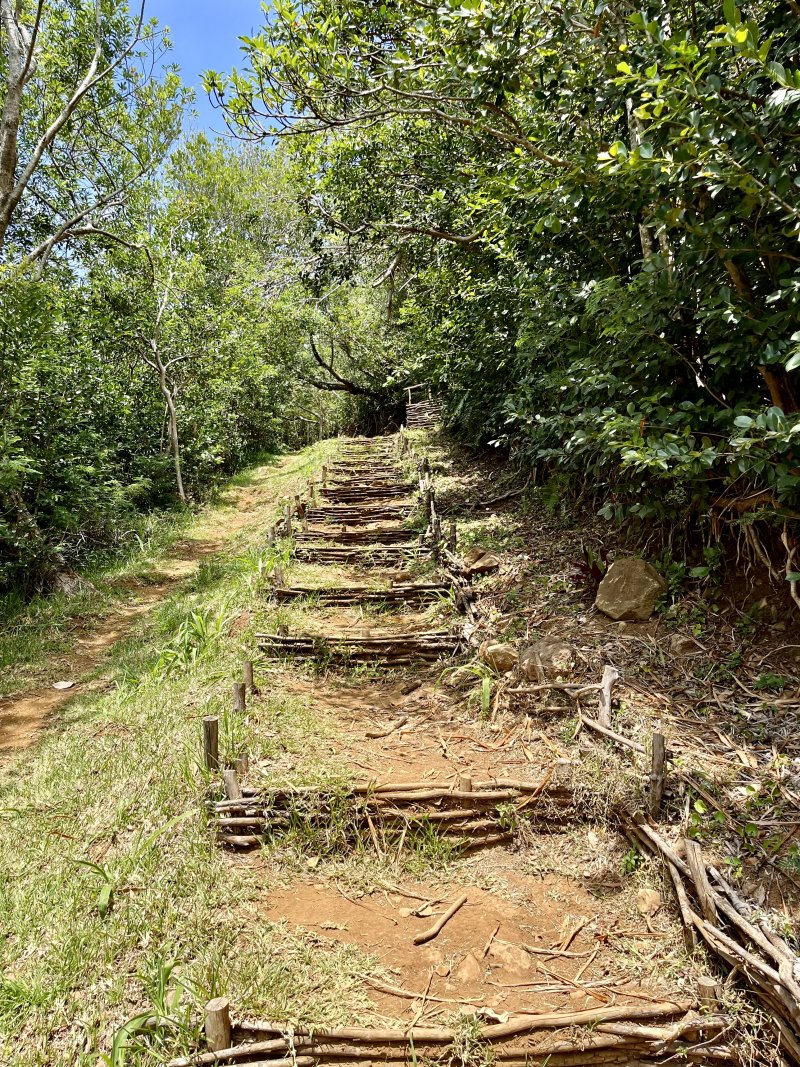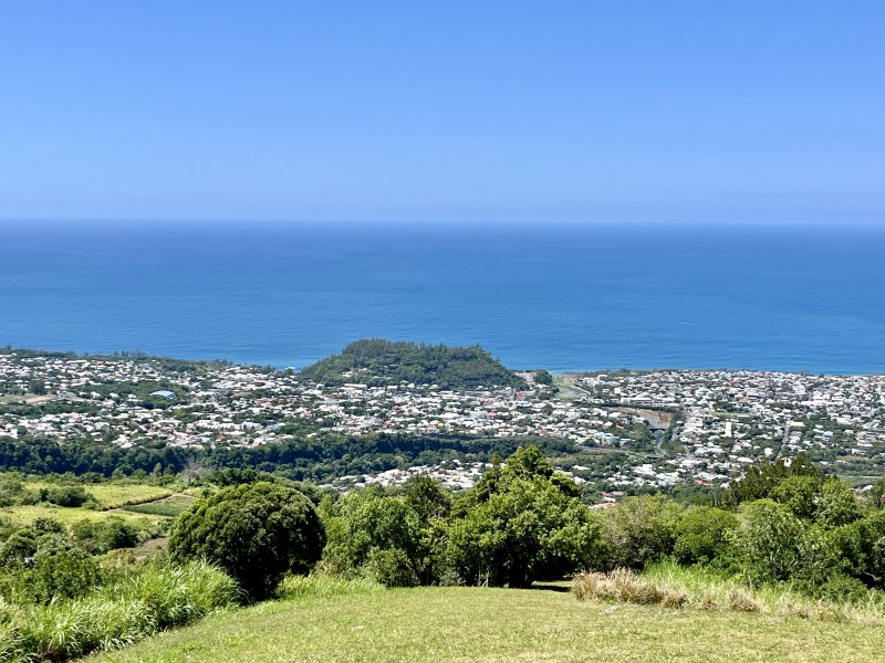 La courte randonnée familiale débute à un superbe parking entouré de fleurs et d'arbres, parcouru d'un sentier qui peut être l'occasion d'un échauffement et au repérage de certaines plantes réunionnaises (photo 1). Un sentier bordé de petits bambous délimite les aires (photo 2). De là on rejoint la route pour partir à droite sur une trentaine de mètres avant d'emprunter à droite, dans le virage, une piste en terre et béton bien indiquée par des pancartes bleues. La piste est courte et très vite on se retrouve sur un large sentier herbeux (photo 3). Il entame ensuite une montée sur le flanc de la colline principalement sur des marches (photo 4). La première partie s'effectue sous les poivriers et goyaviers parmi lesquels poussent encore quelques bois de couleurs (photo 5). La pente est moyenne mais comme le trajet est court, on peut forcer sans problème (photo 6). Dans la montée, on rencontre un croisement. C'est la fin de la boucle si on décide, comme ici, de filer tout droit (photo 7). On parvient rapidement à la fin de la partie arborée qui comporte quelques beaux spécimens (photo 8). L a seconde partie de la montée commence par une prairie ou zigzague un sentier bordé de pieds de vétiver (photo 11). Il est possible de grimper directement par la prairie mais le petit sentier est facile. En se retournant, on a une vue globale sur la ville de Saint-Joseph (photo 12). Ces paysages vont aller en s'agrandissant quand on atteindra les 470 m du sommet (photo 13). Avant de redescendre vers la table d'orientation, ne pas manquer un écart en direction du Château d'eau Delbon 2 situé sur la crête du Piton de l'entonnoir. Il s'effectue sur un sentier à plat dans les grandes herbes et poivriers (photo 14). Dans la trouée du cratère qui est envahi de végétation, on devine encore Saint-Joseph (photo 15). On parvient ainsi en deux minutes à la réserve d'eau bétonnée qui domine les habitations (photo 17). On ne rallongera pas beaucoup cette balade en prenant la Rue Edmond Albius qui commence à deux pas de la réserve et finit à la route de la Plaine des Grègues (photo 18). Revenir au Château d'eau puis à la prairie d'altitude, point de départ de quelques rares parapentistes du dimanche (photo 20). C'est le moment de s'asseoir et d'admirer les paysages vers la Croisée et ses champs de canne à sucre (photo 19) ou vers Saint-Joseph (photo 21). Se rapprocher ensuite de la table d'orientation pour profiter des indications (photo 22). Il est ainsi plus facile de situer les pitons Papangue ou le Morne Langevin à l'horizon (photo 24). Repérer le point d'eau si nécessaire et commencer la descente dans les goyaviers en empruntant le sentier proche de la table d'orientation (photo 25). Il est bordé de goyaviers qui croulent sous le poids des fruits à la saison. Comme la boucle est courte, il ne faut pas hésiter à les goûter et les "regoûter", surtout qu'aucune pancarte ne l'interdit. Le sentier, du même acabit que celui emprunté à la montée est parfois un peu glissant (photo 26). On rejoint en quelques lacets le croisement aperçu en montant et le retour s'effectue par le même itinéraire. Une fois près du parking, se balader à loisir dans ce cadre floral ou arboré en utilisant les sentiers non empruntés au départ. (photo 27).