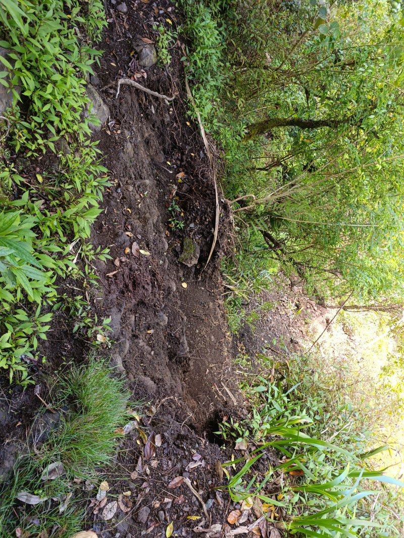 La randonnée débute ici à Hell Bourg afin de visiter la région et de rallonger un peu la distance. Elle peut très bien commencer au dernier parking, quelques dizaines de mètres avant la passerelle comme le font beaucoup de randonneurs. Le GRR1 emprunte la route depuis la Rue du Général de Gaulle jusqu'à la Rivière du Mât. Quitter la rue et partir en face vers la gendarmerie en suivant une petite route traversant le Bras d'Amales bordé de chouchous (Photo 1). La descente est rapide en suivant les panneaux installés tous les 100 m le long des escaliers en pierre (Photo 2). La visite des thermes peut se garder pour la fin même s'il y a assez peu à visiter et que les bâtiments sont en ruine (Photo 3). Poursuivre vers le Bras Sec, le traverser à gué et poursuivre par quelques lacets pour rejoindre la route de l'Îlet à Vidot (Photo 4). De la route, on bénéficie déjà de superbes panoramas sur le Cimendef, la Roche Ecrite et le Piton d'Anchain (Photos 5 et 6). Ce cheminement en descente douce permet de chauffer un peu les muscles pour les préparer à la montée raide qui se présentera un peu plus tard. L'habitat est isolé et on ne souffre nullement de cette marche sur route en descente. La circulation est faible, les jardins sont fleuris et quelques chiens aboient de temps en temps. Après avoir descendu la route départementale on se retrouve à la piste bétonnée du Chemin de Bras Marron qui descend tout d'abord entre de grosses touffes de bambous (Photo 7). Ces bambous se retrouvent d'ailleurs assez nombreux autour des cases qu'on aperçoit ça et là. La route est pentue, comporte plusieurs lacets serrés d'où l'on aperçoit encore les pitons du côté de Grand Îlet (Photo 8). Après avoir franchi le petit pont du Bras Marron, on longe des filaos puis on parvient à une bifurcation avec la route venant de Trou Blanc. Laisser le parking et marcher en direction de la passerelle sur un sentier assez rocheux et parfois en pente forte. Traverser sur la passerelle métallique grillagée qui laisse voir la rivière coulant en-dessous sans pour cela donner le vertige (Photo10). Poursuivre par les escaliers, laisser à gauche des cultures plus ou moins en friche et grimper par la piste au début du sentier du Piton d'Anchain reconnaissable à la culture de chouchou située au croisement. Du croisement, on a de belles vues sur le piton qu'on va pouvoir atteindre rapidement (Photo 11). Bifurquer alors sur la droite pour traverser quelques cultures et vergers d'agrumes avant de cheminer sous les filaos envahis de chouchous sur un sentier sans difficulté (Photo 12). Il est bordé le plus souvent de pestes et de goyaviers et propose déjà quelques grimpettes pour mettre dans l'ambiance (Photo 13). Les points de vue diminuent avec la végétation mais on peut tout de même profiter de vues sur le Gros Morne. Il faut traverser la Ravine Olivette avant de la longer en rive gauche. Le sentier, parfois creusé dans la terre, monte faiblement entre chocas, troènes et fougères (Photo 14). Plus haut, quelques bois de couleurs ont résisté à l'invasion des chocas et autres pestes (Photo 15). On rencontre quelques cultures sur la droite près d'une petite case. Le calvaire a beaucoup souffert des intempéries à la bifurcation vers Grand Îlet. Cet oratoire marque le début de l'ascension du Piton. Elle débute par de larges marches faciles dans les jouvences et longoses (Photo 16). La pente est forte et ne faiblit jamais. Certains tronçons sont étroits et glissants sur de la terre humide ou des roches moussues qui dépassent (Photo 17). De nombreux lacets courts, aux marches hautes encombrées de racines de bois de couleurs imposent parfois d'utiliser les mains (Photo 18). Il faut compter environ 45 minutes pour atteindre le bord du plateau qui occupe le sommet du piton. La végétation est dense mais quelques trouées permettent d'admirer de nouveaux panoramas sur le Gros Morne (Photo 19). Le haut de cette pyramide est plat, dénudé par endroits et un sentier en fait le tour permettant plusieurs points de vue. Certains sont en partie cachés par les branches, d'autres, aménagés avec barrière en bois près d'une grande clairière (Photo 21). On peut, tout à loisir, profiter de ces magnifiques panoramas, différents en fonction des points d'observation. C'est bien évidemment le Gros Morne qui dépasse le plus et se remarque le mieux côté sud (Photo 22). De la clairière, ce sont tous les villages du cirque ou presque qu'on essaye de situer car il n'y a pas de table d'orientation (Photos 23 et 24). Plus loin, au nord, en montant sur un promontoire rocheux, on profite des villages de Mare à Martin ou de Grand Îlet au pied du Cimendef (Photos 25 et 26). Tous ces lieux d'observation se rejoignent par un sentier de bord traversant une belle forêt de bois de couleurs (Photo 27). Il faut descendre dans cette magnifique forêt puis remonter un peu pour terminer la boucle et retrouver le sentier emprunté pour l'ascension (Photo 2). Entamer la descente en gardant en mémoire les passages délicats rencontrés en montant. Il peut être prudent de s'appuyer au bâton pour ralentir les glissades fréquentes. La descente est rapide et l'on parvient à l'oratoire puis à la passerelle en moins de temps que lors de la montée. En fonction de l'heure, une balade sur les berges de la Rivière du Mât peut représenter un moment agréable. Les bus sont rares pour ceux qui ne voudraient plus affronter les kilomètres de goudron et de piste bétonnée ; voilà pourquoi le départ est les plus souvent donné au parking.
