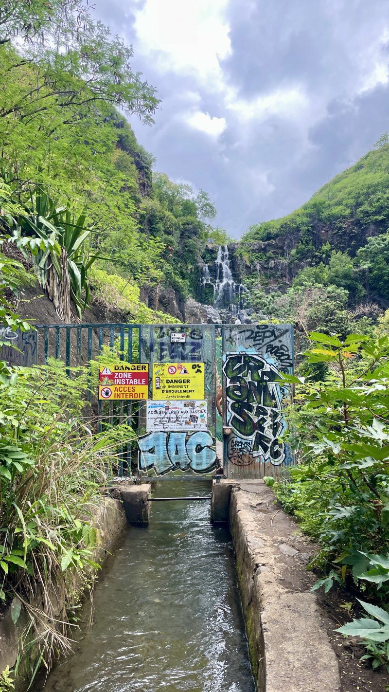 Cette petite promenade dominicale, effectuée avant ou après une baignade dans le lagon de Saint-Gilles ou une visite à l'aquarium permet de parcourir un lieu totalement inattendu près de Saint Gilles qui donne habituellement une impression de terrain aride et sans rivière. Pourtant il coule ici une des rares rivières pérennes de l'île même si son débit n'atteint pas celui de la Rivière Langevin ou des Marsouins. Le sentier est fermé depuis très longtemps par arrêté mais il est certainement un des plus fréquentés de l'île. Les autorités ont sans doute voulu se couvrir d'éventuels accidents. Le seul danger vraiment visible provient des jeunes du coin qui rivalisent sur la hauteur de leur plongeon dans les bassins et pourront avoir un jour un stupide accident. Le week-end, il faudra marcher autant sur la route que sur les sentiers tellement les bordures de la route sont encombrées de véhicules.