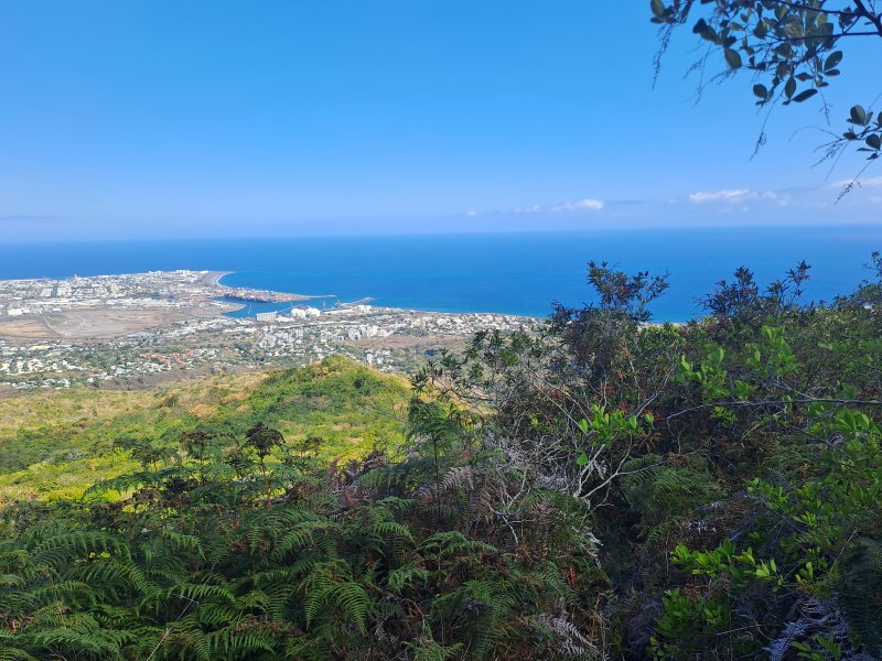Attention : Cette longue boucle, très difficile ne s'adresse qu'aux habitués de la découverte qui ne rechignent jamais devant d'éventuels défrichages et acceptent les griffures. Il ne faudrait pourtant pas y faire passer des milliers de marcheurs pour le remettre, sinon en bon état, du moins rendre la trace plus visible et mieux dégagée. Souhaitons que cette page y participe. Il n'y a en réalité qu'un kilomètre qui pose problème car le reste de la montée vers le Sentier des Lataniers est balisée suffisamment pour ne jamais avoir de doute quant à la direction prise. Le GPS est fortement conseillé lors de ce dernier tronçon. La végétation durant l'ascension se divise en 5 tronçons principaux d'environ 1 km de longueur qui s'enchainent sans transition nette : fougères et bois de rempart, sous-bois de jamrosats, goyaviers, bois de couleurs et enfin cette friche en fin de montée ou la découverte d'une rubalise donne l'impression de trouver un trésor. Les panoramas sont nombreux et variés durant la boucle. En revanche, ils sont totalement inexistants lors de la montée du Sentier Joncourt. Tout le reste de la boucle est à la portée de tous malgré la longueur.