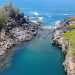 La randonnée débute au grand parking de la Pointe du Diable. Si cette étape est intégrée à une tour de l'île, les marcheurs arrivent de Bel Air et de l'aéroport de Pierrefonds en longeant la mer (Photo 1). Emprunter le parcours bétonné qui va de la plage de la Pointe du Diable jusqu'au grand parking du magasin Jumbo Score. Après un petit détour jusqu'à la fin de la pointe de lave, la marche s'effectue au plus près des vagues (Photo 2). La jonction est agréable dans un parc en bord de mer. Longer le parking et repérer le souffleur, en bord de mer, à la fin de la route de sortie. Attendre la bonne vague pour repérer le jet plus ou moins haut près de la zone d'entrainement des skates (Photo 4). La traversée de la Ravine Blanche ne pose pas de problème particulier comme le reste du circuit jusqu'au port de Saint-Pierre. A la Ravine Blanche, repérer les toitures colorées qui dépassent sur la gauche, à une centaine de mètres, et les rejoindre par l'Avenue Luc Donat et l'Allée Narrassigua Perroumal pour admirer un des plus beaux temples de la Réunion (Photo 5). Reprendre par la rue ou la plage en fonction de la topographie des lieux, le but étant de marcher toujours au plus près de l'eau. A deux endroits, dont l'hôtel Grand Large, il vaut mieux quitter les bords de l'eau afin de suivre une rue pour un court moment. On pourrait marcher sur les rochers à marée basse mais des habitations se terminent sur la mer (Photo 7). Plus loin, passer près de la petite sirène constamment taguée et détériorée en raison de sa tenue dénudée(Photo 8) et poursuivre en direction du port par une ruelle qui longe la mer. Rejoindre le port en marchant sur la plage et se rapprocher du bassin de radoub en empruntant une partie du parc arboré (Photo 9). Ce petit parc au cœur de la ville procure de l'ombre agréable mais sur une courte distance (Photo 10). Après une balade dans le parc qui entoure le port, on peut se rapprocher de la plage (Photo 11). Tout près, il est facile de visiter le port si on le désire (Photo 12) puis de trouver la Rue de l'Amiral Lacaze longeant la côte, à l'ombre des grands banians qui la bordent. Repérer leur racines entrelacées qui créent des sculptures vivantes (Photo 13). Longer la mer en visitant les curiosités présentées sur la randonnée urbaine de Terre Sainte. A la Pointe du Parc et à la Pointe du Gouffre, filer tout droit par les rochers pour profiter des roches déchiquetées, de la petite arche (Photo 15) et, hélas, de beaucoup d'ordures. Comme les militaire apprécient peu qu'on longe les rochers et leur enceinte pour regagner le sentier de Bord, emprunter alors le Chemin du Trou de Chat, contourner le régiment et longer l'enceinte des logements en frôlant le petit supermarché. Suivre ensuite au plus près la muraille d'enceinte du régiment et rejoindre le bord de mer. Trouver le début du Sentier de Bord qui sera la seule portion de sentier officiel de cette sortie. On est près de l'eau et il n'y a aucune habitation (Photo 16). Le sentier longe la mer dans un cadre agréable qui permet un petit repos (Photo 17). Le sentier se termine sur la route de Terre Sainte. Partir à droite puis emprunter immédiatement la petite route qui rejoint par quelques virages le magnifique Bassin Dix-huit (Photo 18). A la fin de ce sentier, on alterne entre les routes littorales et les sentiers au plus près de l'eau pour traverser le très long village de Grands Bois. Suivre la trace ou la carte pour passer au plus près de l'eau car la côte est sauvage et vaut ces petits détours (Photo 19). Par forte houle, le spectacle des vagues se brisant sur les rochers est magnifique (Photo 20). On parvient, plus loin, à l'ancienne usine reconnaissable à sa cheminée. Prendre juste en face et se diriger vers de nouveaux grand s banians aux racines entremêlées (Photo 21). Tout près, l'avenue Daniel Ramin, qui est une minuscule route longeant la plage, passe devant le minuscule bassin de baignade dans les rochers (Photo 22) puis la longue plage (Photo 23). A la fin du village, de la route et de la plage, opter pour une des deux solutions possibles :