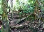 La randonnée débute au parking de la zone aménagée à la Forêt du Piton de la Ravine Blanche. Se diriger vers le grand panneau explicatif, qui donne le plan de quatre circuits. Des pancartes implantées un peu partout indiquent les points de départ, d'arrivée, de croisements. Il suffit donc de trouver le premier poteau rouge et de ne jamais quitter cette couleur jusqu'au retour. Des parties de la boucle sont communes et certains poteaux peuvent avoir trois couleurs. Privilégier le sens antihoraire pour la première boucle et le sens horaire pour la suivante. Quelques mètres après le départ, on a quelques points de vue sur l'océan et la réserve d'eau (Photo 1). La zone du point de départ abrite déjà de magnifiques tamarins des Hauts (Photo 2). Le sentier devient très vite tortueux. Il traverse des clairières, de belles plantations de tamarins et quelques zones où la végétation est moins domestiquée (Photo 3). Certains tamarins qui poussent dans les clairières sont pourvus de longues branches contrairement à ceux vivant dans les bois touffus (Photo 4). On en rencontrera plusieurs avec ces caractéristiques (Photo 5). Ils méritent tous une courte halte pour en faire le tour ou admirer leurs ramures. Le terrain monte régulièrement sur une pente faible. Les parties plus pentues comportent des escaliers qui facilitent la marche (Photo 7). Après maints virages et une pente régulière en direction de la lisière, le sentier oblique sur la gauche pour suivre de loin la clôture proche d'une étendue plantée d'eucalyptus (Photo 8). Les arbres sont nombreux et le sous-bois propre autour du large sentier qui les traverse (Photo 9). On longe les installations de la station photovoltaïque. Plus bas, les clairières sont plus nombreuses et surtout peuplées d'acacias noirs, mais on retrouve très vite les tamarins (Photo 10) et quelques portions bordées de plusieurs espèces de grandes fougères (Photo 11). La première boucle se termine assez rapidement. On retrouve le paysage du début avec de nouveau des grands tamarins (Photo 12). Descendre sur un autre petit parking et rejoindre la route. On peut longer au plus près la route, regagner le début de la deuxième boucle ou flâner autour du terrain de pétanque pour de belles vues sur les cirques, le village et sur la retenue d'eau (Photo 13). Un court détour rapproche d'une aire destinée à la production de charbon de bois (Photo 14). Plus loin, après avoir passé la ravine, c'est une aire de pique-nique aménagée pour personnes à mobilité réduite qui peut s'emprunter pour un court détour (Photo 15). Le sol bétonné et plat donne accès à un kiosque bien équipé offrant également les mêmes panoramas (Photo 16). Si l'on effectue un petit détour en direction des massifs de fleurs qu'on devine au loin, on passe près de nouvelles tables de pique-nique (Photo 17). L'écart prend fin après avoir longé un curieux tamarin allongé sur le sol et qui semble ne plus finir (Photo 18). Traverser la route et entamer une longue descente dans une forêt presque identique à la précédente mais plus touffue (Photo 19). Les tamarins sont toujours présents mais plus rares. On trouve aussi de beaux bois de couleurs et des touffes de calumets (Photo 20). On traverse sans difficulté une ravine au fond rocheux (Photo 21). Très vite, on parvient au Chemin Tamar'Haut qu'on traverse, avant de retrouver le sentier de l'autre côté (Photo 22). C'est reparti pour quelques zigzags dans les bois de couleurs sur terre humide ou racines (Photo 23). La remontée, toujours aussi facile, s'effectue sur un terrain humide mais peu glissant. Là aussi, les marches facilitent la marche sur les pentes les plus fortes (Photo 24). Le bruit des quelques voitures qui passent annonce la fin de la deuxième boucle. Le sentier, toujours propre, s'élargit sous de magnifiques tamarins (Photo 25). On frôle les prairies qui entourent le village de la Ravine Blanche. On a même de beaux panoramas sur les montagnes et le piton de la Ravine Blanche (Photo 26). Une fois sur la route, rien de plus facile que de la suivre en direction du parking de départ ou de repartir de l'autre côté pour une exploration de nouveaux sentiers. On peut ainsi remonter un long escalier dans les tamarins bordés d'ambavilles et de fleurs jaunes (Photo 27) ou s'approcher de ravines moussues, affluents du Bras Creux. La fin de la boucle est toujours aussi agréable dans les ambavilles ou hortensias (Photo 28). Après ces nouveaux sentiers, rejoindre le parking que l'on devine entre les arbres.