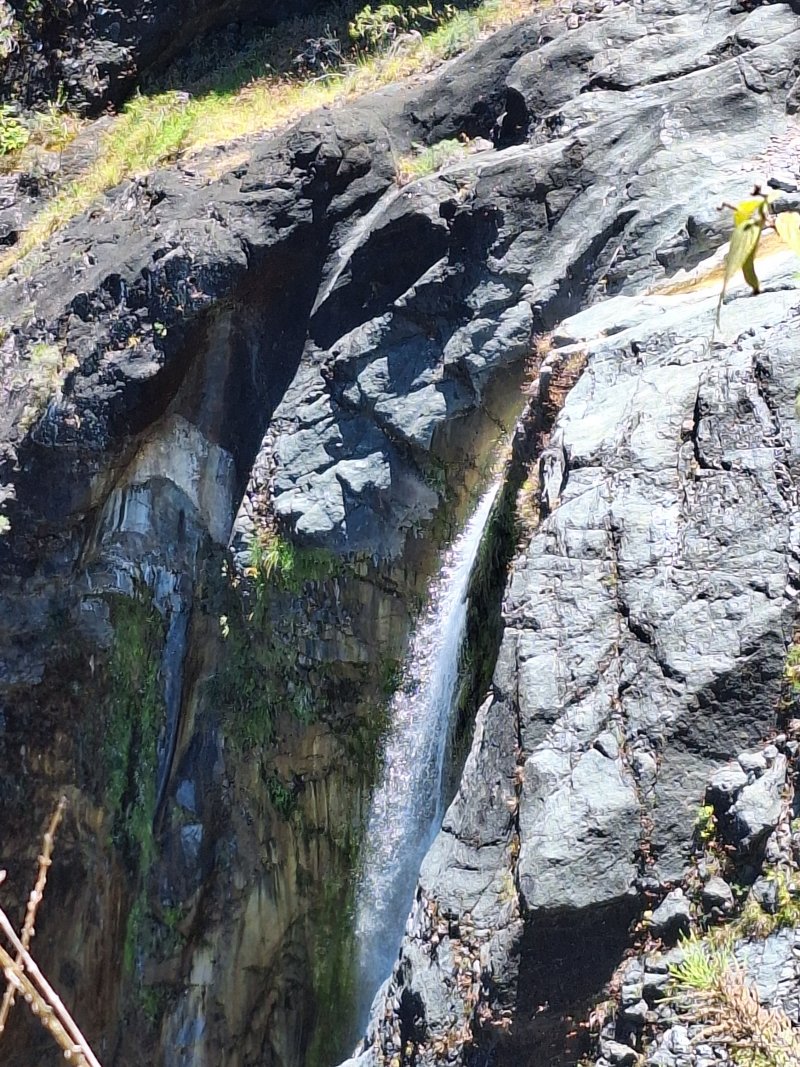 On peut, une fois n'est pas coutume, emprunter un sentier destiné à nos amis canyonistes pour se régaler de nouveaux spectacles, parfois aquatiques ou de panoramas inhabituels. C'est le cas de ce très court trajet tout en montée qui quitte la route de l'îlet à Cordes pour se rapprocher au plus près de la haute cascade dont on aperçoit le sommet depuis le pont. On comprend très vite en arrivant au terminus que la dernière corde partant vers le vide n'est pas faite pour un randonneur, surtout s'il souffre du vertige. Le circuit est très court et peut très bien se combiner avec la montée à la Cascade Pitsa puisque le sentier de départ est commun sur 50 mètres. Attention, si on peut effectuer cet aller-retour par mauvais temps il en va tout autrement de la cascade Pitsa qui se pratique presque totalement sur rochers glissants. Ne pas manquer, dans les trouées de la montée, les dernières chutes de la Ravine les Salazes qui se jettent dans le Bras Rouge. Là-haut, c'est un paysage fantastique qui attend les courageux qui auront monté ces 200 mètres et un peu redescendu jusqu'au bord du précipice. Il est fortement déconseillé d'amener des enfants en raison des à-pics de la falaise en fin de parcours.