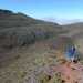 La randonnée débute au premier parking rencontré après avoir descendu les lacets du Pas des Sables. Dix mètres après la fin du goudron, trois ou quatre emplacements permettent de garer facilement le véhicule. En cherchant les endroits les plus plats, se diriger vers le rempart et s'en approcher au plus près (Photo 1). On remarque que, malgré certains pics rocheux, le terrain semble facile à traverser pour rejoindre le Sentier Mouton (Photo 2). Marcher en rive gauche d'une minuscule ravine à sec (Photo 1). On rencontre un peu plus loin un champ de "menhirs" constitué de morceaux d'orgues tombés de la falaise à gauche (Photo 5). Quelques herbes ou fleurs tentent de s'implanter dans ce sol pauvre. Un discret sentier fait son apparition (Photo 7 G). On peut le suivre ou se rapprocher du rempart pour rallonger un peu la boucle mais on le retrouve plus loin avant de couper le sentier venant de l'Oratoire Ste-Thérèse. Suivre la ravine une cinquantaine de mètres et prendre à gauche sur du sable pour suivre à nouveau le fond de la ravine. Avant d'arriver au cassé, remarquer à gauche une grotte et son foyer montrant qu'elle est connue et utilisée. Marcher sur le fond basaltique de la ravine égayé de quelques petits bassins remplis par la dernière pluie (Photo 6). La ravine cesse d'un seul coup et plonge vertigineusement dans le premier Cassé de la Rivière de l'Est (Photo 10). On aperçoit d'ailleurs le classique grand cassé dans le lointain, beaucoup plus connu puisque près d'un sentier officiel. Attention de ne pas s'approcher trop du bord où une glissade s'avèrerait fatale mais profiter des paysages grandioses sur la plaine verdoyante en dessous de nos pieds (Photo 12). On aperçoit très bien la Savane du Rond, les Piton Coco, Rouge ou de l'Îlet qui ne peuvent que motiver pour une descente future car on ne voit aucun obstacle pouvant décourager de s'y aventurer. Chercher, au plus près du cassé, le passage sur la lave entre les branles verts. La montée est insignifiante. Le basalte est remplacé par des gros gratons instables. Viser un gros monolithe d'une douzaine de mètres de haut en effectuant quelque zigzag pour le contourner par la droite (Photo 13). Poursuivre en visant cette fois le piton Haüy puis une dent de lave qui se repère très bien à sa forme pointue. La rejoindre et prendre un peu à droite pour atteindre un cratère qu'on contourne par la gauche (Photo 17). Le cheminement devient instinctif car le Demi-Piton et le Chisny sont très visibles devant. La traversée amène facilement au GRR2 qu'il suffit de suivre à plat jusqu'au pied du Demi-Piton (Photo 18). On quitte alors très vite ce sentier à une aspérité du sol pour traverser la plaine sableuse où tentent de s'installer des herbes et quelques fleurs (Photo 19). Le pied du Demi-Piton est encombré d'une haute et large coulée sombre. Viser le col que fait la pente du demi-Piton et la coulée où le cheminement est facile et la pente assez faible. Le but de la journée étant de marcher le plus à plat possible, repérer les roches esseulées nommées Gendarmes, les frôler et rejoindre la route (Photo 21). On ne peut pas manquer, en face, le discret sentier qui débute une remontée du Chisny. On le laisse très vite pour épouser au plus près la courbe de niveau qui mène droit vers un grand champ de bombes volcaniques toutes aussi grosses les une que les autres, projetées il y a 1000 ans par l'éruption du Piton Chisny (Photo 22). Entamer graduellement la descente vers la Plaine des Sables où on ne tarde pas à rencontrer le sentier descendant vers Grand Galet par Grand Pays (Photo 23). Suivre ce sentier et obliquer à droite pour une progression un peu moins plate que tout ce qui vient d'être fait mais sans aucun danger. La descente vers le cassé n'a rien d'obligatoire mais elle permet de se régaler de nouveaux panoramas sur Grand Pays, le Morne Langevin ou son cousin en face, le Piton du Rond de Langevin (Photo 24). Il faut alors reprendre en direction du Morne Langevin sur un terrain sableux comportant même parfois des dunes accumulées par les crues soudaines lors de fortes pluies. On se retrouve ainsi au pied du Morne Langevin, constitué d'innombrables orgues de basalte étalés en plusieurs couches infranchissables (Photo 26). Un écart est recommandé lorsque l'on aperçoit les traces rouges à 200 mètres sur la droite (Photo 25). Se rapprocher à nouveau du rempart pour entamer une longue "traversée du désert" sur un sol tout d'abord très souple où on a vite fait de remplir les chaussures de sable. Plus loin c'est un vrai plaisir de cheminer totalement à plat le long du morne et des amoncellements du sable tombé du rempart où tentent de pousser quelques fétuques ou fleurs jaunes (Photo 27). Après une longue courbe pour rester au plus près du mur, on se trouve nez à nez avec deux très jeunes tamarins qui ont réussi à pousser dans le sable (Photo 28). Peut-être trouverons-nous un petit bois ombragé dans quelques décennies ? Partout, des traces caractéristiques d'empreintes de lièvres et leurs crottes montrent qu'ils ne craignent pas la fraîcheur du lieu. Pour les voir, préférer l'aube ou le crépuscule. Contourner les roches au pied du Pas des Sables afin de rester à plat et retrouver la piste et le véhicule qu'on découvre recouvert d'une fine couche de poussière soulevée par les passages incessants de véhicules de touristes et randonneurs.