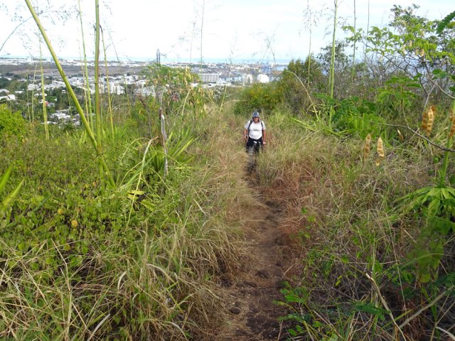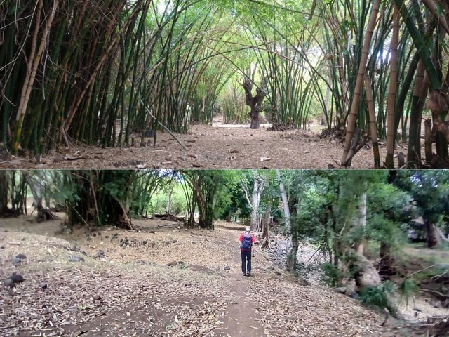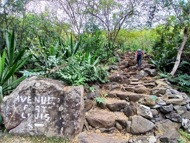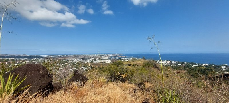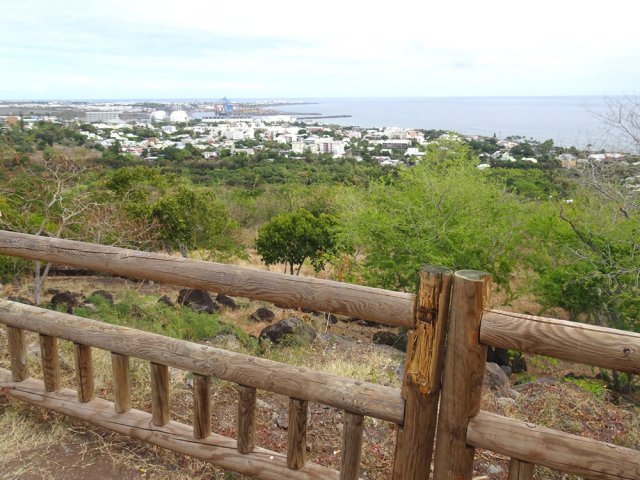 Envie du marché de St Paul, alors je valorise la route avec la découverte du Parc Rosthon et cette boucle à la végétation et paysages diversifiés. La chaleur et l’humidité, en plus des quelques écarts et pauses paysage, notamment vers la chute d'eau et le bassin cheval, feront fi du temps annoncé. Oh surprise, le bruit des voitures est remplacé par celui de l’eau qui coule à flots dans la ravine et les nombreux oiseaux. Quel étonnement d’avoir un si bel endroit si près des zones urbaines. Les vues sur le littoral, et en particulier du Port, me font rêver. A quand une rando urbaine dans le Port?