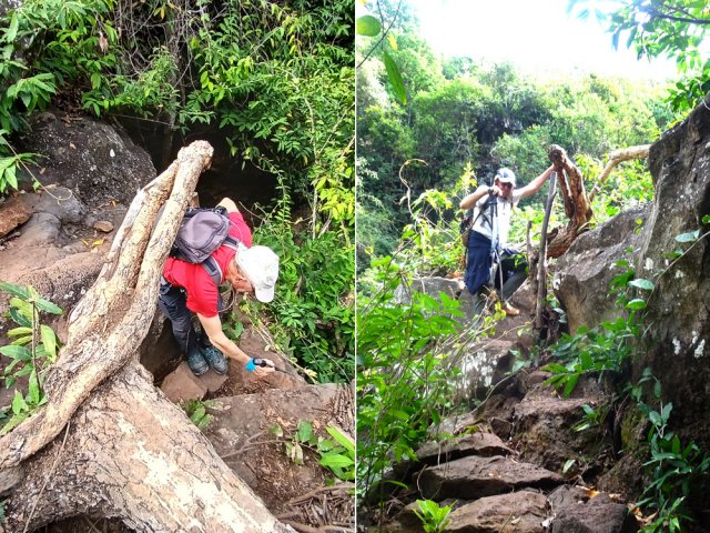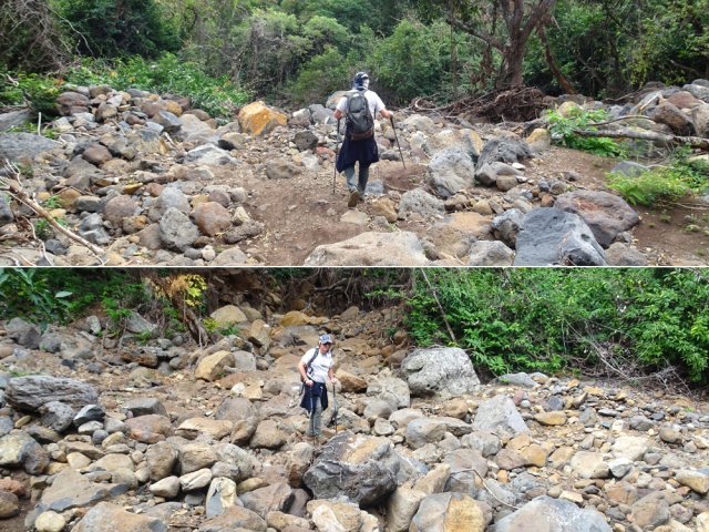 Boucle "rallongée" faite ce jour, le cyclone a laissé des traces sévères au niveau de la petite ravine des lataniers, ou il faudra procéder à un peu d'escalade. A la croisée du chemin de la boucle vers le bassin cheval et le sentier qui bypasse la boucle pour remonter sur la crête, passage sans dififculté dans le nouveau lit de la ravine, bien rester en rive gauche pour retrouver le sentier au bout de 50 m.
