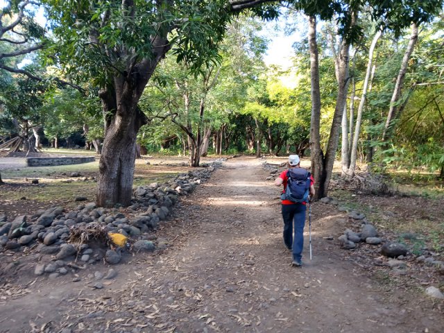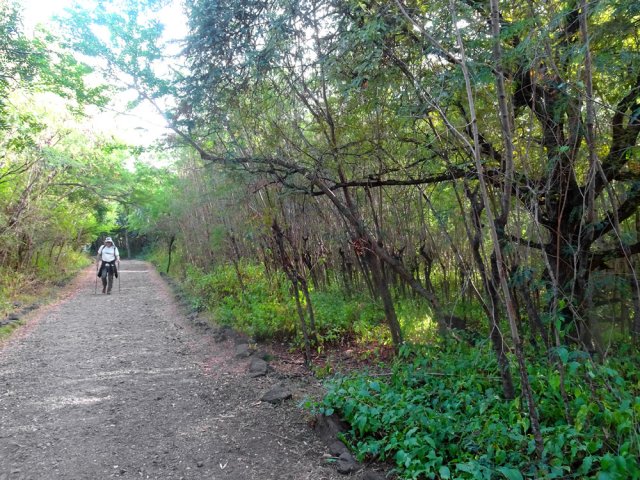 La randonnée débute Rue Évariste de Parny, au grand parking qui se situe en face de la médiathèque de la ville de la Possession. Franchir la porte annonçant le Parc Rosthon, juste avant le pont de la Ravine des Lataniers. On se retrouve pour plus de 300 m sur une large allée longeant la Grande Ravine des Lataniers, de l'autre côté de la rambarde (Photo 1). A la fin de l'allée, partir sur la gauche et traverser le large lit caillouteux envahi de ricins. De nombreuses allées circulent sous les manguiers centenaires. Bifurquer à droite et suivre la large allée bordée de galets dont certains ont conservé de la peinture (Photo 2). Pas de difficulté pour ce départ tout en douceur à l'ombre des grands arbres (Photo 3). A partir de là, il faudra suivre les panneaux indicateurs à condition de savoir quelle direction prendre. Les panneaux sont nombreux mais peu de renseignements sur les sentiers empruntés (Photo 4). La piste se rapproche au plus près de la ravine à sec (Photo 5). Des sentiers partent sur la droite et la traversent pour d'autres parcours. On s'éloigne enfin de la ravine en poursuivant sur une piste toujours aussi facile (Photo 6). Prendre à droite à l'embranchement de plusieurs directions (Photo 7). On rejoint très vite un étage des carrières qui ont fait couler beaucoup d'encre au moment de la construction de la NRL. Il est possible de traverser dans la savane qui l'a envahie ou mieux, de contourner par un chemin plus étroit passant dans les faux mimosas (Photo 8). Attention, en partant à droite immédiatement, il faudra remonter en hors sentier à la fin de la carrière. A l'issue du contournement, on domine les carrières et les nombreux sentiers qui font le bonheur des joggers (Photo 9). Emprunter un sentier plus discret sur la droite qui se dirige vers un pylône qu'on aperçoit à 200 m. La trace est devenue plus étroite entre hautes herbes sèches et chocas (Photo 10). La montée est régulière pour effectuer les 200 m jusqu'au croisement. On a de belles vues sur les vallées des ravines des Lataniers. Le sentier est toujours facile à suivre. Il traverse des savanes, des friches, des petits bois et quelques zones rocheuses (Photo 11). Les portions plates, très courtes, permettent de souffler un peu (Photo 12). La pente reprend aussitôt entre avocatiers marrons et savanes sèches (Photo 13). Laisser le premier sentier descendant sur la gauche. Poursuivre en ayant toujours la ligne haute tension et les pylônes en point de mire (Photo 14). A 270 m d'altitude, laisser le sentier qui se poursuit vers l'Est et entamer la descente vers la Petite Ravine des Lataniers. On traverse de nouvelles zones rocheuses offrant de belles vues sur le Port (Photo 15). La descente n'est pas très longue mais assez technique en raison de la pente et des roches en travers (Photo 16). A l'approche de la ravine, le sentier fait un coude puis plonge à un moment dans une partie rocheuse surmontée d'un arbre tombé au sol. C'est le seul passage technique de la boucle qui demande un peu d'attention (Photo 17). Aussitôt après cette descente, un petit sentier file en direction de la ravine. De nombreuses balises blanches invitent à rejoindre un bassin alimenté par une cascade, hélas souvent à sec (Photo 18). L'endroit doit être agréable lorsque la cascade coule et remplit son bassin. Longer la ravine en rive gauche en retrouvant des parties rocheuses et de nombreuses marches (Photo 19). Plus bas, le sol a été chamboulé par les crues violentes et il faut désormais suivre les taches blanches pour se frayer un chemin jusqu'au Bassin Cheval, emporté lui-même par l'eau en furie (Photo 20). Après la traversée, laisser les deux sentiers partant sur la gauche et entamer une forte montée en direction de la Route de la Montagne. La montée du pierrier s'effectue sur de hautes marches en pierre (Photo 21). Toute la montée est raide et s'effectue le plus souvent sur ces marches (Photo 22). Le sentier redescend un peu et l'on rejoint plus facilement l'aire de pique-nique. Elle a souffert des ans, du manque d'entretien et les kiosques ont disparu. Les rambardes ont pourri et si certaines semblent en meilleur état, éviter de trop s'y appuyer (Photo 23). Les vues sur le Port sont toujours là. Un sentier débute au sud de l'aire. Il descend vers les trois cuves rouillées repeintes par des artistes du coin (Photo 24). Emprunter le sentier 3 Bacs pour revenir en direction de la Petite Ravine des Lataniers. Il comporte quelques tronçons rocheux assez abrupts qui permettent de rejoindre la piste plus large longeant la ravine (Photo 25). Partir sur la gauche et suivre la piste jusqu'au gué sur la ravine. Il a également souffert des crues mais on trouve facilement le passage vers une énorme racine dans le fossé. 100 m plus loin, on parvient à une fourche de trois destinations. Prendre la plus à droite et poursuivre sur une belle piste plate entretenue (Photo 26). On s'approche tranquillement du Parc Rosthon en frôlant quelques beaux spécimens de tamarins (Photo 27). Descendre vers une grosse cuve avant de pénétrer à nouveau dans le parc aux manguiers. Partir sur la droite en direction de la ravine. Avant de revenir au gué, effectuer une petite boucle dans le parc en se rapprochant des grosses touffes de bambous en vive gauche de la ravine (Photo 28). Revenir au gué emprunté en début de boucle et reprendre la belle allée ramenant au point de départ.