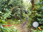 La pluie, trop forte ce jour là (voir les dernières images du film ci-dessous) a transformé le sentier-ravine en forte rigole. La montée des eaux pouvant être rapide, il a été jugé plus prudent de remettre sine die la poursuite de cette magnifique aventure au milieu de la jungle de la Plaine des Lianes.