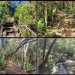 Peu après le banc (maintenant bien déterioré) de la photo 8, nous avons emprunté un discret sentier à gauche qui permet de franchir la Ravine Mère Canal au niveau d'un charmant petit bassin avec cascade. Nous avons ensuite poursuivi la montée sur l'autre rive jusqu'au sentier permettant d'accéder au bassin et à la cascade situés juste en aval de l'arche. Repassés en rive gauche, nous avons suivi la trace qui prolonge le sentier montant pour changer à nouveau de rive en passant sur l'arche, non sans être descendu vers l'amont dans la ravine pour voir et photographier l'arche.