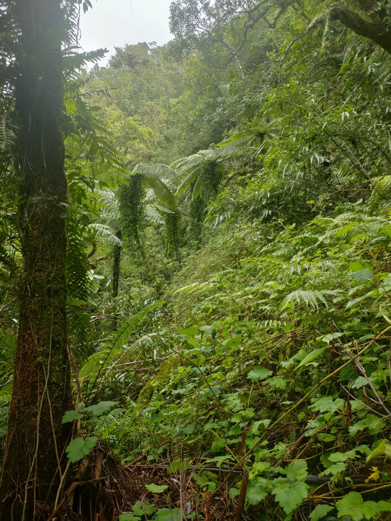 Le point de vue sur l'usine de Takamaka par la montée à la Fenêtre de Grand Etang