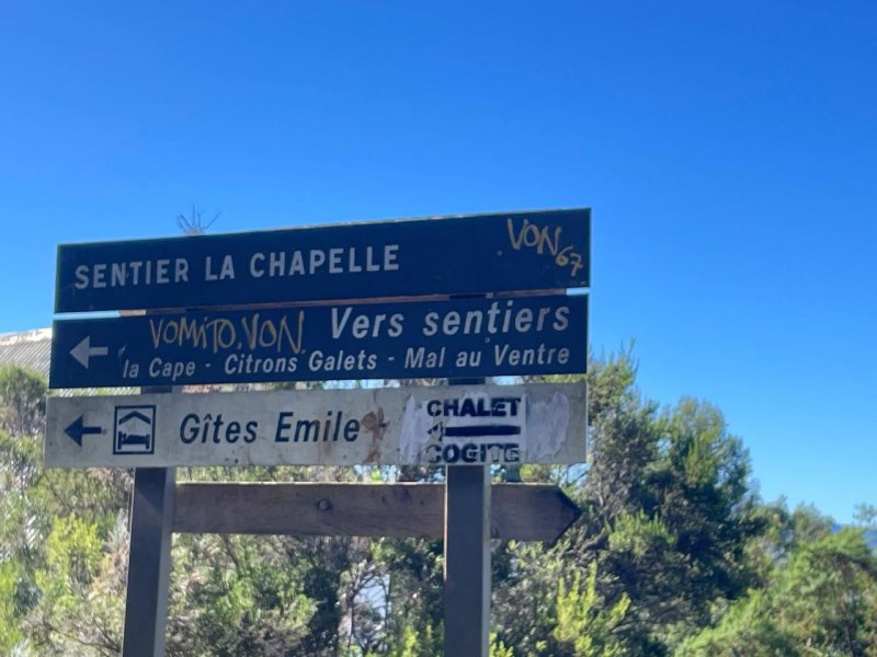Sentier qui grimpe et un peu boueux donc un peu glissant par endroit mais la montée se fait bien. L'expo sur le maronnage au sommet est très intéressante. Il prend la CB et vend bières ou autres boissons et snack (biscuits, chips etc). Très peu de vue à la table d'orientation car temps couvert, nous y étions vers 12-13h.