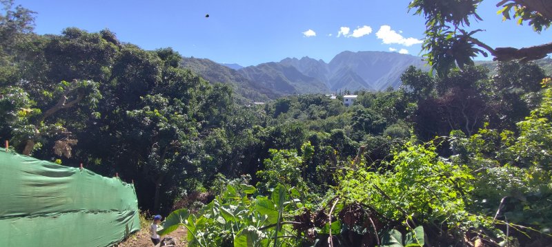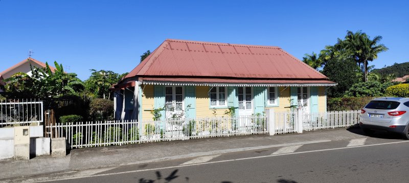 La randonnée débute sur le parking des bus en face de l'arboretum. L'arboretum étant tout proche il est possible d'en faire le tour avant de partir ou comme ici en milieu de boucle. L'endroit abrite les trois premiers stands de dessin. La première case rencontrée près du parking abrite une association de la ville. A la fin de la rue Fontaine, après avoir profité des premiers panoramas sur le Dimitile (Photo 1) et de quelques cases, on parvient au petit Jardin Fontaine. Ne pas chercher d'eau courante car le patronyme Fontaine est un des plus communs de l'île. L'endroit, très bien entretenu, est fleuri, calme, reposant (Photo 2) et entouré de belles cases entourées de jardins. Revenir sur ses pas et descendre en direction de la rivière en empruntant l'escalier situé à la fin de la rue Fontaine (Photo 4). Il y a peu de route à grande circulation jusqu'à la bifurcation vers le stade et les terrains de tennis au début du Coteau Sec. Pour éviter le goudron et le béton, poursuivre sur le chemin Grand Fond et trouver facilement le sentier qui attaque le coteau (Photo 5). La pente est sérieuse mais le sentier ombragé. Il s'approche de la route puis s'en éloigne pour suivre le circuit sportif par quelques lacets et escaliers de terre et de bois (Photo 6). On rencontrera trois nouveaux spots de dessin dans les lacets recouverts de pierres (Photo 10). Ces lacets sont la seule courte difficulté de la boucle ; il suffit de marcher lentement si on manque d'entraînement. Pour voir la onzième station de croquis, il faut partir sur la droite en arrivant sur le Chemin du Coteau. Repartir vers le bas et suivre cette petite route jusqu'au croisement avec la RD 26. La Rue Vienne n'est qu'à quelques pas sur la droite. Partir sur cette rue, prendre la première à gauche puis marcher jusqu'à la fin de la route qui semble un cul de sac mais se termine en réalité par un escalier métallique. On passe de la rue goudronnée aux maisons fleuries à un sombre verger en forte pente. Le sentier, étroit et abrupt, mène à la rivière que l'on entend depuis le haut (Photo 12). Les 5 derniers mètres ont subi les assauts du dernier cyclone mais le passage est bien marqué. Si la boucle s'effectue dans l'autre sens, le départ est moins visible. Retenir que la suite du sentier est exactement en face de l'autre portion, tout près de la petite cascade de la Source Rémy (Photo 13). Une montée sur terre et racines (Photo 14) amène en quelques minutes aux premières habitations. Reprendre alors le chemin de la ville par la Rue Hoareau et remarquer, juste avant la RD26, le cacaoyer couvert de fruits et de minuscules fleurs à même le tronc de l'arbre (Photo 22). La pente sur route est faible jusqu'au parking où se termine la première partie de la boucle, plus végétale. L'autre partie, plus urbaine va débuter par une incursion dans le parc arboretum pour y trouver quelques beaux spécimens d'arbres (Photo 15) et bien sûr des panneaux pour apprendre à les dessiner. Le lieu a subi de graves dégâts par le cyclone Batsirai en 2022 et a perdu beaucoup de son charme. Comme il n'y a qu'une entrée au petit parc, ressortir par la même grille, située en face de l'office du Tourisme et prendre à gauche. Une rue longe le parc et se termine en ruelle (Photo 16). A partir de la mairie, flâner à l'envie ou suivre cet itinéraire qui, reconnu, assure de trouver de magnifiques et vieilles cases (Photo 21) ou de splendides panoramas sur le Dimitile (Photo 20). Profiter aussi de quelques monuments (Photo 17) ou décorations urbaines (Photo 18). Ne pas manquer l'Impasse des Orchidées (Photo 24) pour s'approcher de la Case Pamplemousse qui porte très bien son nom quand l'arbre qui la flanque est couvert de gros fruits jaunes (Photo 25). De nouvelles cases bordent la route jusqu'à l'église Saint-Vincent de Paul qui signe la fin proche de la balade (Photo 28). Remarquer, juste en face de l'église, le cinéma qui porte la croix sur sa façade. Elle date de l'époque ou le bâtiment abritait les offices religieux durant la construction de l'église. Rejoindre la mairie puis le parking.