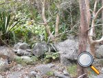 - Les cannes fourragères n'ont pas encore repris possession de la ravine. On progresse facilement sur une mer de roches (PHOTO 1).