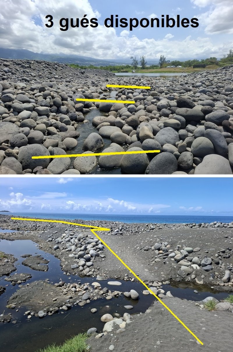 Se rendre à Saint-Louis et bifurquer en direction de Bel Air - Rejoindre le grand parking à la fin de la Rue Valmy - Débuter en traversant la Ravine du Gol sur les galets - Marcher en direction de l'Etang Salé en restant si possible au plus près de l'océan - Arriver au Gouffre et poursuivre dans les mêmes conditions jusqu'au village - Longer la mer jusqu'au port de l'Etang Salé et bifurquer à droite en face le port - rejoindre le petit étang au cœur du village et poursuivre par la rue Hippolyte Hoareau jusqu'aux terrains de sport - Partir sur la droite à la pancarte indiquant la piste DFCI et slalomer sous les filaos, eucalyptus et tamarins pour finir par une longue piste se terminant au parking du Gouffre - Partir sur la gauche et longer la piste cyclable par le sentier, plus ombragé - Marcher jusqu'à une route très large partant en direction de la station d'épuration qu'on contourne par la gauche - Emprunter jusqu'à la fin cette piste qui finit près de la voie rapide - Utiliser la piste ou les sentiers qui la bordent pour parvenir au point de départ.