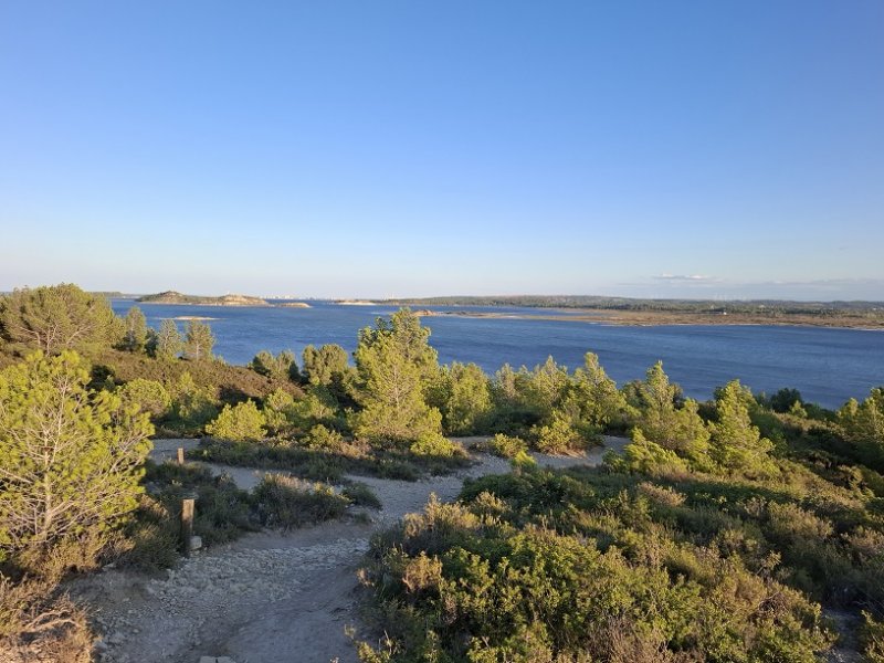 Tout près de Narbonne, entre l'étang de Bages-Sigean et la terre, demeure une petite étendue d'eau salée uniquement alimentée par les eaux de ruissellement. La communication des deux lagunes qui subsistent avec le large s'effectue par un petit canal artificiel. Une lagune, celle que l'on contourne par cette courte balade, a longtemps été utilisée comme saline. L'autre, l'Etang du Doul, d'une superficie de 37 hectares, se visite également par un sentier qui en fait le tour en escaladant le Roc de Berrière qui culmine à ... 72 m ! L'hyperhalinité de cet étang fait de lui le plus salé de la région, voire du territoire français. Toute activité ayant cessé dans la récolte du sel, les deux lagunes sont désormais classées comme réserve ornithologique. On a d'ailleurs la chance de pouvoir repérer toute la faune aquatique habituelle des bordures d'étangs et l'on rencontre souvent des flamands roses et même des cigognes. La boucle est tellement plate, facile et bien aménagée qu'ont pourrait certainement l'effectuer aisément en fauteuil roulant.