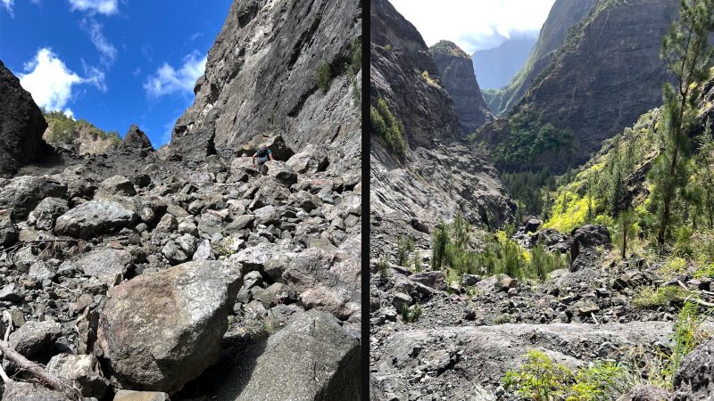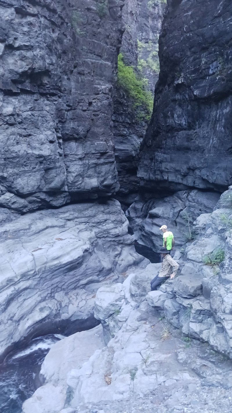 Pour la parution de la 600ème randonnée du site, pas question de faire trop facile ou décontracté, au moins pour en garder des souvenirs durables. Les idées ne manquent pas pour de nouvelles fiches et c'est notre ami Ousarsiph2 qui nous a proposé de remonter le Bras d'Oussy pour une randonnée semi aquatique. Reconnue en 2017 par l'intéressé, le cours d'eau de l'époque, bien nettoyé par le dernier cyclone, représentait effectivement une agréable remontée de bassins en cascades. Le manque de phénomènes météorologiques violents depuis quelques années a favorisé la repousse de bois de chapelets, filaos mais surtout des hautes et solides cannes fourragères qui bouchent les passages plats et coupent facilement peau et tissus si on les agresse. Autant dire que cette sortie est réservée aux amateurs inconditionnels de ce genre de sport d'aventure. Après le passage d'un prochain cyclone, ce sera certainement une randonnée à classer dans moyenne en difficulté. Pour le moment elle mérite bien le "très difficile" du cartouche ci-dessus et ne devra être tentée que par des habitués. La première partie utilise des sentiers classiques pour se rendre dans le cirque. La descente vers le torrent est sportive mais pas impossible. La remontée du bras est un festival de magnifiques paysages sauvages, d'empilements de rochers énormes, de falaises abruptes, de bassins, chutes d'eau mais attention, également de pierres tombées des falaises friables. Les camps bracos et amoncellements de canettes de bière indiquent que, faute de randonneurs, le coin est tout de même visité. Un tiers de la remontée s'effectue sur les rives envahies, un tiers dans l'eau et un tiers à escalader de grosses roches tombées des sommets depuis bien longtemps. Les renseignements de la fiche sous formes de cartouches ou d’icônes doivent être correctement interprétés car on ne se lance jamais dans une randonnée de 11 kilomètres en 9 heures sans être vraiment entraîné.