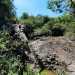 3 – La solution proposée ici. Rejoindre le sentier comme en 1, marcher jusqu'au gué puis remonter le Bras Creux en escaladant la falaise de la cascade à sec (Photo 25). Se frayer parfois un passage dans les cannes fourragères ou suivre simplement le fond basaltique jusqu'à la piste (Photo 26). Emprunter la piste vers la gauche et commencer une agréable descente dans les champs de canne (Photo 27). N'emprunter que les chemins bien tracés par les roues des tracteurs. On côtoie des cases abandonnées, de beaux camphriers, des eucalyptus avant de parvenir au stade du 12e (Photo 28). Ce jeu de piste amène au gué déjà rencontré à la montée. Poursuivre simplement sur le sentier pour arriver en 5 minutes à la Rue Saint-Vincent de Paul.
