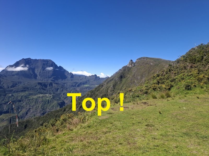Depuis la mise en ligne de la randonnée passant par la Piste Baptiste, les commentaires sont enthousiastes. En revanche, ils critiquent la descente vers l'Îlet Alcipe qui s'effectue le plus souvent en aller-retour. Cette nouvelle boucle emprunte à nouveau le sentier pour atteindre le bord du rempart mais suit plus longuement le vide. On profite ainsi plus souvent des merveilleux panoramas sur Mafate et l'on découvre les restes de la sommière Cresson qui a perdu depuis longtemps son rôle de coupe-feu. Elle n'apparaît même plus sur les cartes et la large entaille dans la forêt n'est plus qu'un étroit sentier. Comme toujours, il faut partir tôt pour bénéficier des meilleurs points de vue avant l'arrivée des nuages ou des nappes de brouillard. En hiver austral (voir photos), il est fréquent de marcher sur la glace ou le givre déposé sur les herbes ; il faut donc bien se couvrir. Sentiers et pistes sont très bien entretenus et tout le parcours convient à une famille. Ne pas manquer, avant d'emprunter le sentier de la Sommière Cresson, le point de vue sur les trois îlets des Orangers, 800 m plus bas.