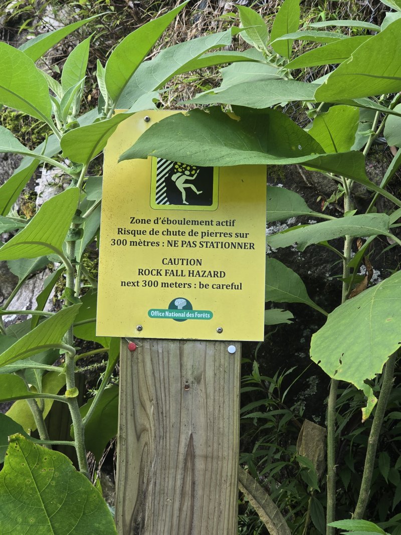 La randonnée débute à la fin de la route Forestière de Takamaka où deux parkings peuvent accueillir une douzaine de véhicules. Rejoindre le belvédère de l'usine par cette même route (Photo 1). Elle se finit aux installations dominant l'usine située plus bas dans le rempart. Poursuivre jusqu'au belvédère vieillissant qui accueille chaque jour de nombreux touristes venus admirer le paysage (Photo 2). Quelques vestiges ou plusieurs panneaux donnent des explications sur la région ou sur l'usine (Photo 3). Avant d'entamer la descente au barrage, profiter du spectacle de la vallée du Bras Cabot et de la Rivière des Marsouins comportant des dizaines de cascades pas toujours visibles de là (Photo 4). On a une petite idée de ces hautes chutes d'eau, très connues des canyonistes, qui remplissent différents barrages destinés à alimenter les turbines situées 300 m en-dessous de l'usine (Photo 5). Le sentier débute au pied du belvédère. Il est tout d'abord bordé de barrières qui ne protègent plus du vide tant la végétation a recouvert le rempart (Photo 6). La région étant humide, le sentier est souvent glissant (Photo 7). La marche est donc ralentie pour éviter de glisser (Photo 8). Passer le départ du sentier du Bras Patience et poursuivre. Les sources sur la droite et de minuscules ravines s'évitent par des passerelles en bois, également glissantes (Photo 9). Un peu plus loin, une passerelle étroite plus longue que les autres traverse le lit du Bras Patience (Photo 10). Depuis cette passerelle on a une vue imprenable sur la grande cascade du dernier barrage du Bras Patience (Photo 11). Une forte descente débute. Les lacets nombreux rendent la pente moins forte. Les parties les plus abruptes ou glissantes sont protégées de rambardes métalliques (Photo 12). Continuer encore jusqu'aux nouvelles sources qui sont désormais évitées par de larges et belles passerelles métalliques (Photo 13). Certaines de ces sources, bien visibles sur les cartes, sont parfois puissantes et créent même des petites chutes (Photo 14). Une nouvelle passerelle neuve au milieu des chouchous franchit une petite ravine (Photo 15). La descente ne faiblit pas. On aperçoit enfin le Barrage Gingembre dans une trouée de la végétation, dominé par une barre rocheuse verticale (Photo 16). On parvient assez vite aux infrastructures du barrage. Les pêcheurs connaissent bien le lieu pour y taquiner la truite (Photo 17). Il est possible de monter sur une partie de la digue protégée de rambardes (Photo 18). Repérer, au pied du mur, un petit sentier de pêcheur débutant dans les jouvences. Il rejoint très vite les eaux du barrage. Le sentier étroit reste visible dans une végétation assez touffue d'invasives (Photo 19). Poursuivre, toujours en rive gauche en longeant la rivière ou ses bassins. Rejoindre un arbre sur un rocher (Photo 20). Depuis le promontoire, on devine au loin la cascade alimentant le Bassin Gingembre (Photo 21). Il faut, pour aller vers l'amont, trouver le meilleur passage dans la rivière ou sur ses berges. Quelques petites chutes égayent cette remontée (Photo 22). Dans la partie rocheuse, une portion plus étroite demande de l'attention afin de ne pas glisser dans l'eau (Photo 23). Poursuivre en rive gauche sur les rochers ou les plaques basaltiques en direction de la chute qu'on entend déjà couler (Photo 24). Passer près du bassin Takamaka, large et profond, attirant les baigneurs (Photo 25). Une fois tous ces obstacles franchis sans grand danger, on parvient au bassin entouré de hautes falaises difficilement franchissables (Photo 26). Pour poursuivre vers l'amont et visiter de nouvelles chutes, s'inscrire dans un club de canyoning. Profiter de ce lieu sauvage où gronde la chute d'une dizaine de mètres (Photo 27). Faire demi-tour et reprendre le chemin inverse pour remonter au parking. On peut distinguer l'usine au loin au milieu du rempart (Photo 28). Au barrage, il faudra affronter les lacets rocheux et glissants de la remontée, franchir à nouveau le Bras Patience et sa cascade ainsi que les passerelles avant de retrouver le belvédère.