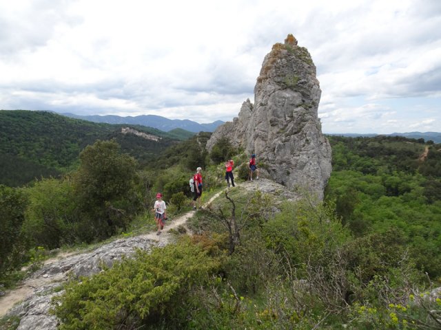 La région reculée de Rennes le Château a fait presque autant couler d'encre que les cathares installés dans la région. Son curé, arrivé pauvre en 1885 a soudain redonné vie à l'église et effectué des dépenses substantielles pouvant laisser croire à la découverte d'un trésor. Ce secret, emporté dans la tombe, ne peut faire oublier la beauté de la région et les multiples possibilités d'y organiser des randonnées. Au printemps, ce parcours bucolique ravira autant les amateurs de botanique que les sportifs épris de panoramas grandioses. La randonnée familiale ne comporte pas de difficulté majeure. Les chemins et sentiers sont larges, bien entretenus, sur des pentes faibles. La signalétique y est de qualité, rendant impossible un égarement. Il suffit de suivre les nombreux panneaux annonçant le Sentier du Ritou (Curé en langue locale). Le village de Rennes le Château, perché sur sa colline, est un point de repère tout au long de la boucle. Mais le plus important point de mire est le Pech de Bugarach qui domine à 1230 m vers le sud-est. Les sentiers en corniche, le long des barres calcaires, offrent à chaque instant la possibilité d'admirer les paysages de forêts et de fermes isolées abritant de grands troupeaux de bovins. Les rocailles et anfractuosités peuvent cacher des vipères, aussi faut-il prendre garde où poser les mains en cas d’escalades ludiques des arêtes rocheuses.