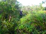 La Forêt Jacques Payet couvre des centaines d'hectares entre les Hauts de la Crête et la Vallée Heureuse. Toute la région a été modelée par les forestiers au siècle précédent. On rencontre un peu partout des bois ou de longues lignes de cryptomerias facilement repérables sur les photos satellite. Des camphriers, qui ont souvent du mal à supporter les grands vents des cyclones, sont également implantés un peu partout. Lors de la boucle qui fait le tour de cette grande forêt, on repère de nombreux sentiers partant de la Route Forestière des Onze Cents. Utilisés à l'époque par les forestiers, ils sont désormais empruntés par les braconniers et deviennent de plus en plus étroits. Hélas, par manque de fréquentation, beaucoup disparaissent aux alentours des 1000 m et c'est le hasard qui peut amener un "explorateur" à rejoindre le sentier Jacques Payet longeant la Vallée Heureuse. C'est le cas pour les deux sentiers faisant le tour de la forêt de camphiers désormais bouchés par les cadavres de camphriers. Le sentier présenté sur cette fiche débute au plus près de la Ravine Souris Chaude qu’il longe jusqu'à s'approcher de la Ravine Jacques Payet. Très facile à repérer, il se suit sans hésitation jusqu'à l'abri de l'ONF qui se transforme lentement en ruine insalubre. Les deux km de montée comportent cependant une centaine de mètres envahis par les fougères et les pailles sabres mais jamais on ne se pose la question sur l'itinéraire. Le départ proposé ici à partir du Gîte de Basse Vallée rallonge un peu cette sortie qui ne peut pas encore être classée en aventure.