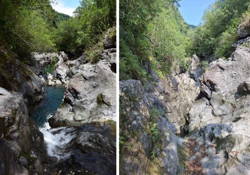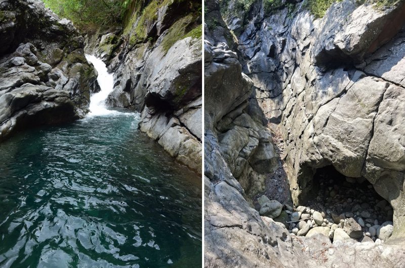 Photos 1 et 2 : le premier canyon en eau / à sec